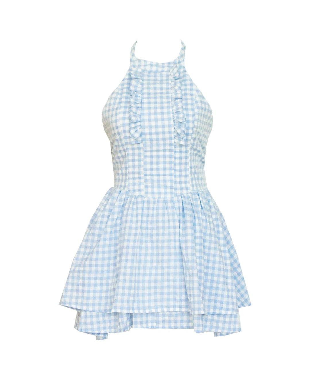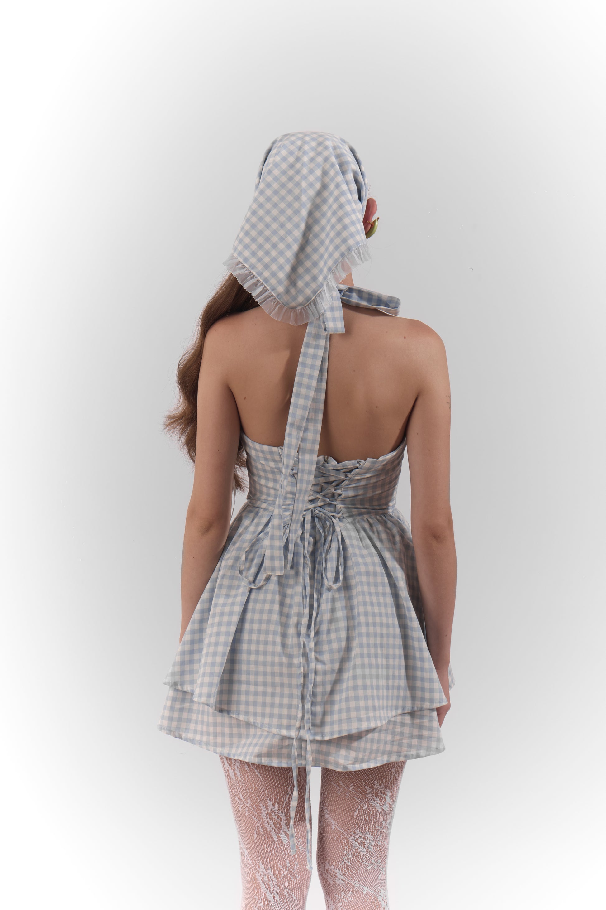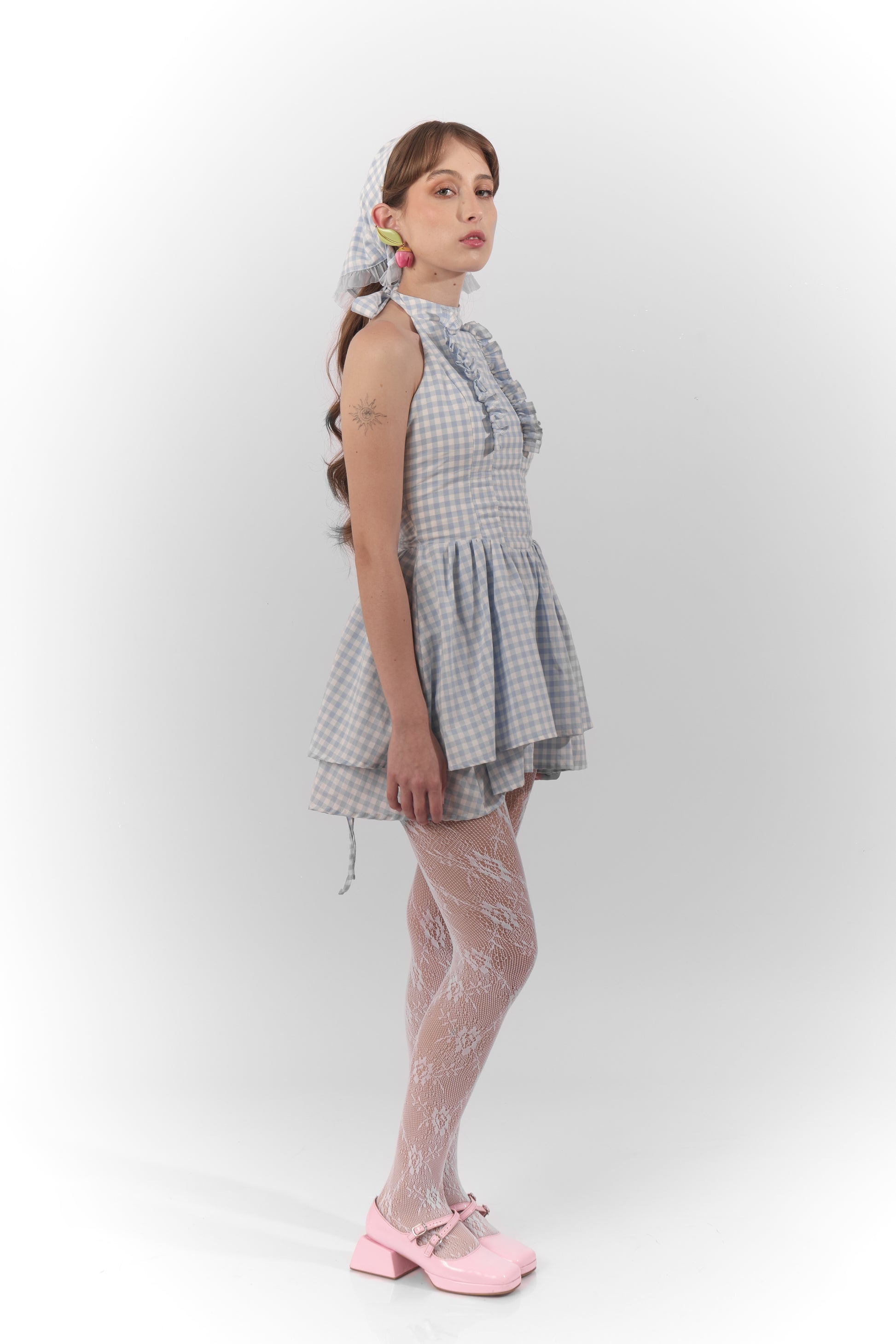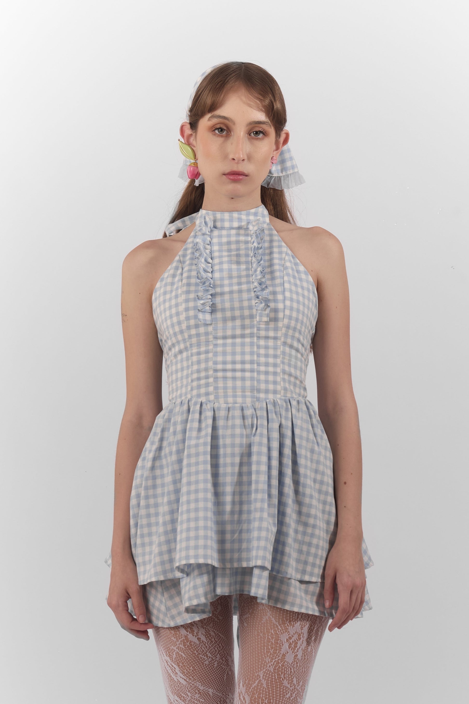 Un vestido de ensueño que parece sacado de un cuento encantado, con delicados cuadros azul pastel y un diseño fresco que evoca la ligereza de las nubes. Sus detalles románticos y femeninos lo convierten en la prenda perfecta.